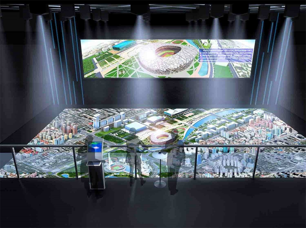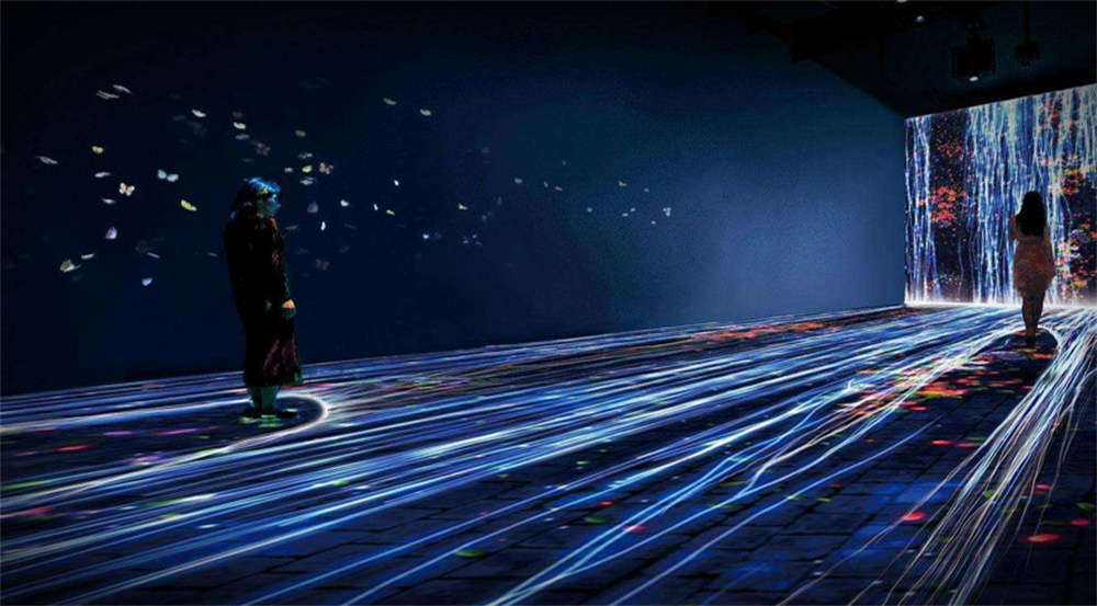 沉浸式投影系统是由三个面及以上硬质背投影墙组成的高度沉浸的虚拟演示环境,配合三维跟踪器,用户可以在被投影墙包围的场景里近距离接触虚拟三维物体或者随意漫游仿真的虚拟环境。该系统具有视觉冲击感强、分辨率高、画面层次感强、沉浸式交互体验等特点。