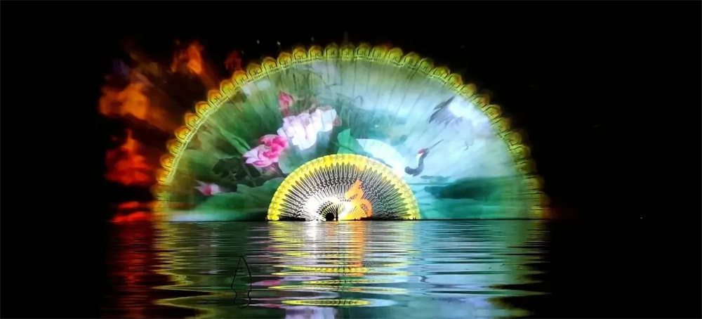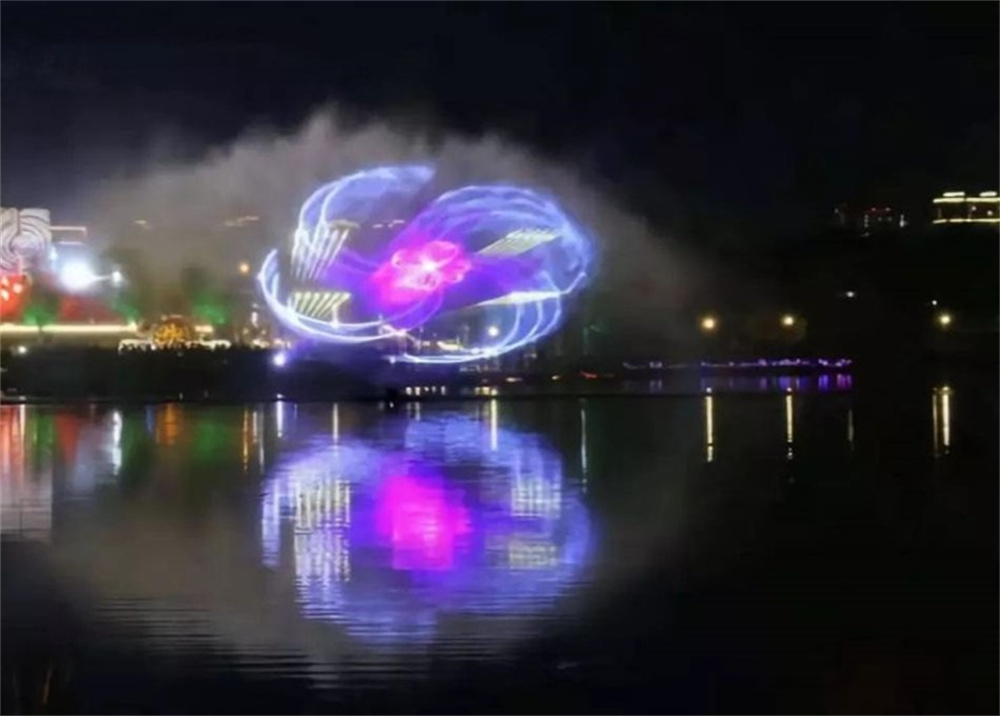 雾幕投影将虚拟的背景与水气完美的结合在一起,渲染出一种梦境般的场景,同时也增加了水景的艺术感染力。雾幕投影呈现形态非常多样化,整个画面配合 水景的多种形态而发生变化,是绝佳的创新型展示方式。